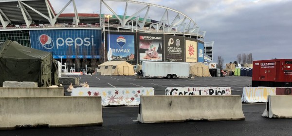 The picture is a site that I jogged pass, this morning. The tents and the military-looking vehicles are places where they are setting up to